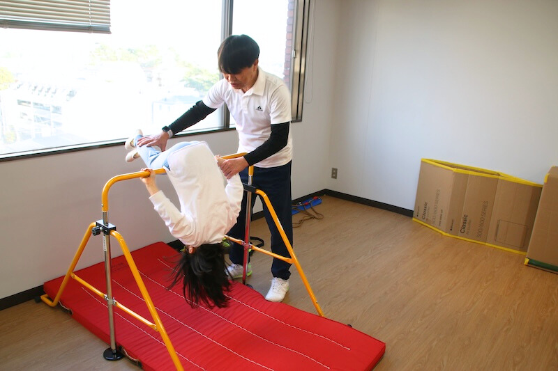 今では、自分から鉄棒に触れ、補助板を使いながら目線の高さまで挑戦しています。